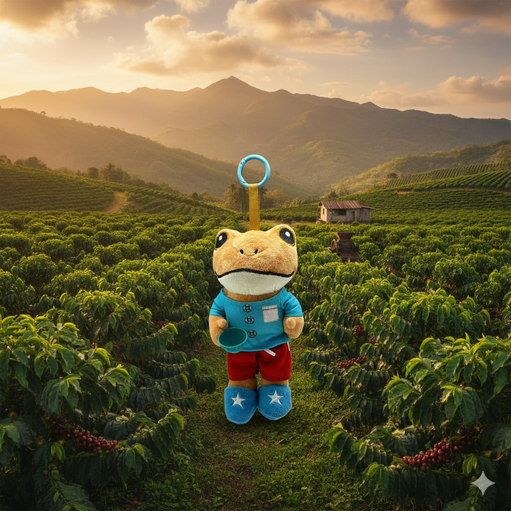 eL PeLuche SaPo CoNcHo CaFeTero ceLebra eL aroma, saBOr y TRaDiciÓN deL CaFé PUerTOrriqueño. eSte LLavero SaPo CoNcHo repRESenta La caLideZ deL CAmPo y La cuLtura caFetera qUe carAcTeriza a La isLa.
